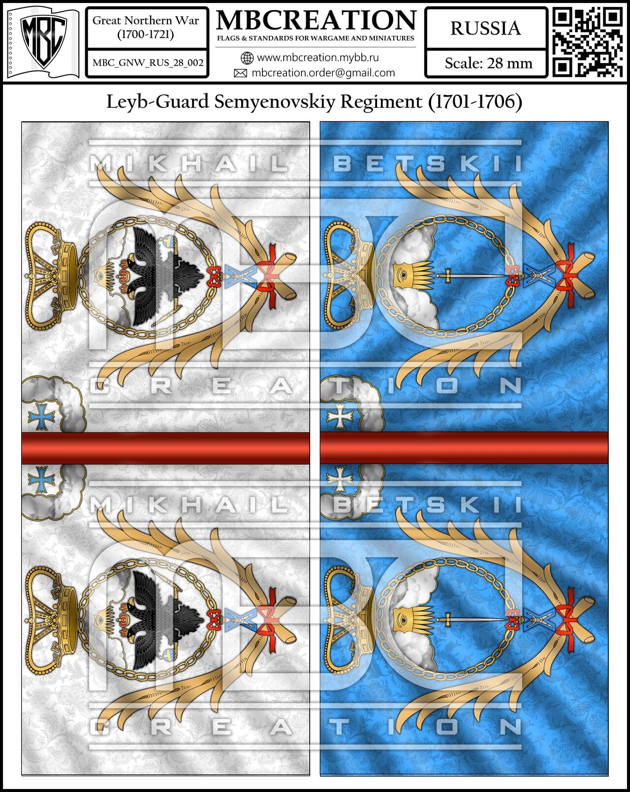 You are here » Paper flags and banners for wargames and military history miniatures » Great Northern War (1700–1721) » Russian Army