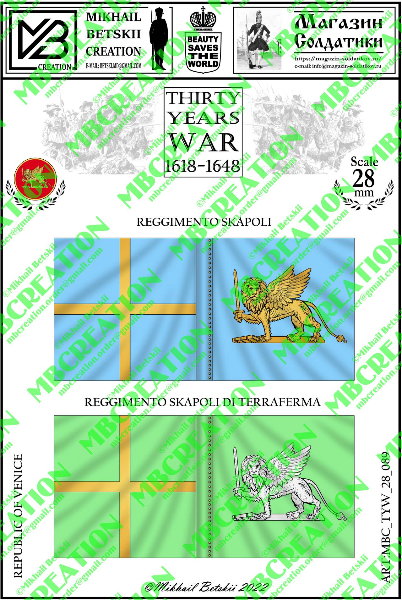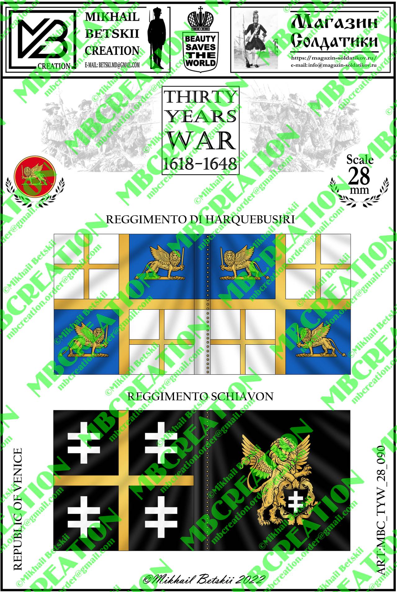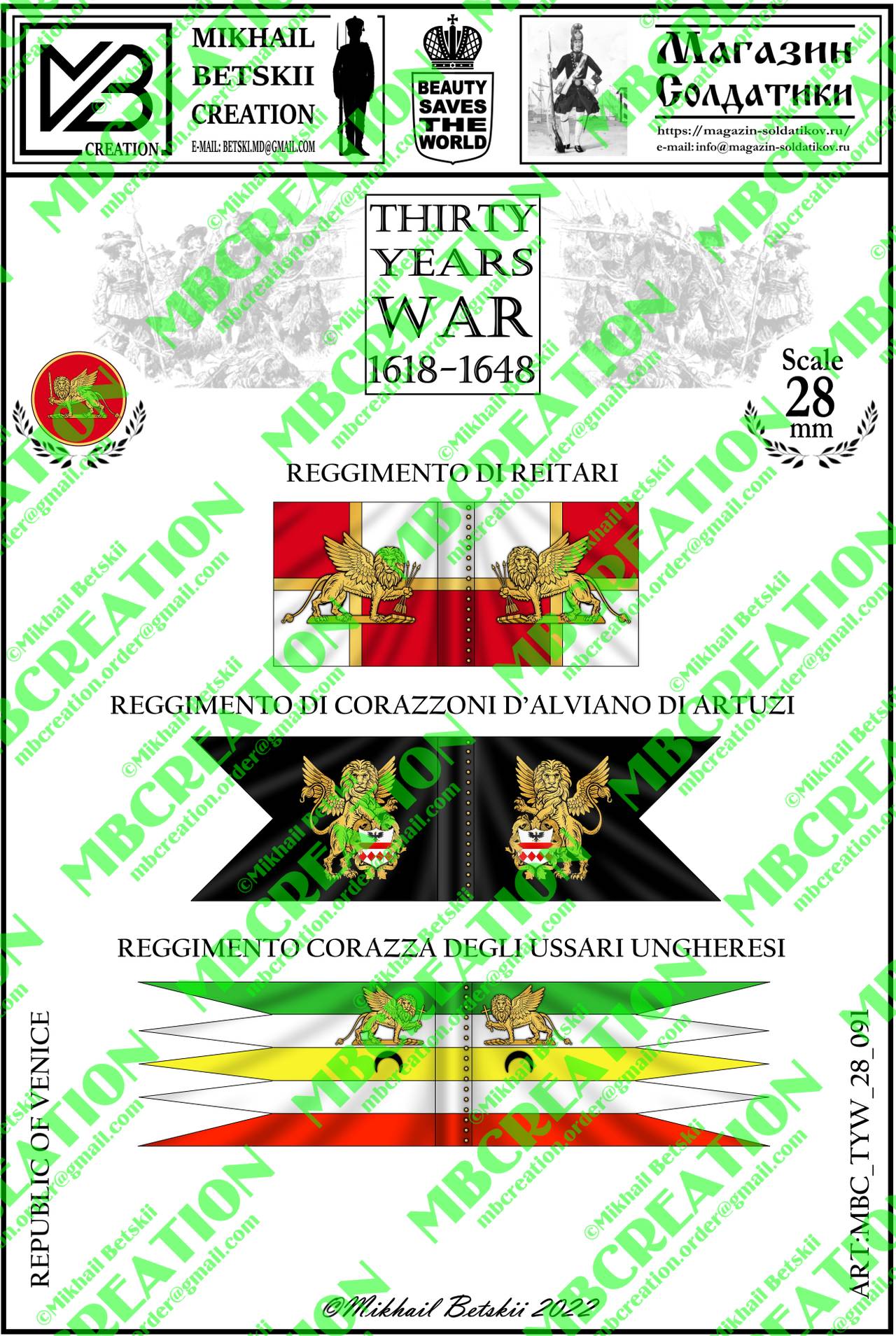 You are here » Paper flags and banners for wargames and military history miniatures » Thirty Years' War (1618-1648) » Republic of Venice